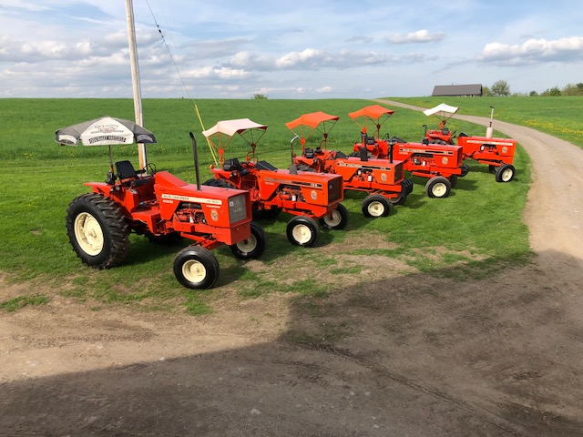 D17 1958 (NFE), WD45 1954 (NFE), WD 1952 (NFE), WD 1950 (WFE), Allis F-40 forklift, Allis CA, Allis D14, Ford Jubilee, Many IH Cub Cadets, 32 Ford Dump, 65 Comet, 66 F100.