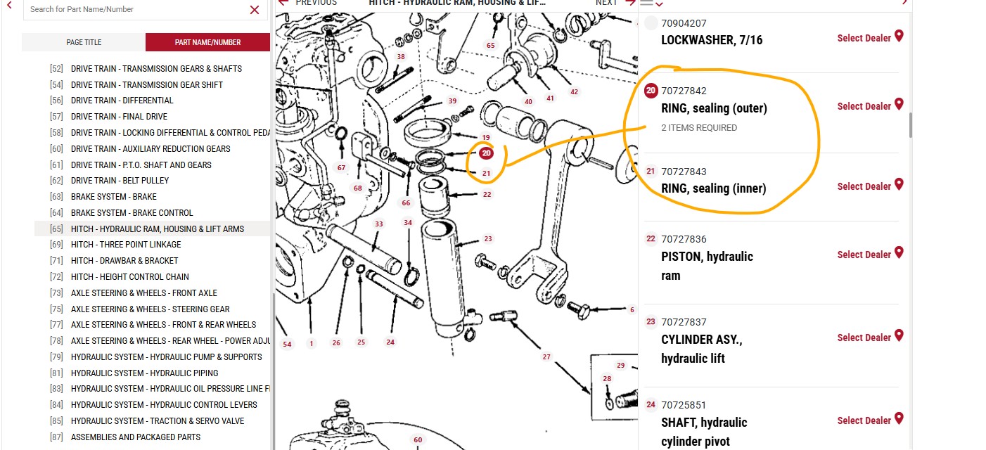 If you're not familiar with the site, I recommend looking through the Agco Parts Books website. They have all the Allis/Agco parts books available for free online viewing. See link below and this pictures taken from the ED40 book. But if it's just the seals you need, any local hydraulic or industrial supply shop worth their salt should be able to measure and cross-reference them.