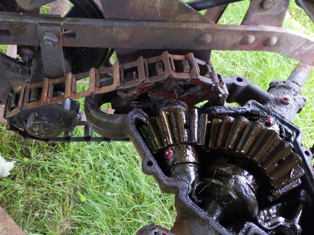 International harvester on this cover it says remove to fill with gear oil. I've tried finding information on this hay rake but I'd like to know how full of gear oil and it actually has two grease fittings on it which I was surprised as you can see where I put red grease...