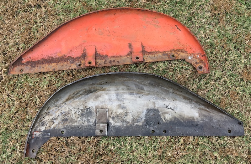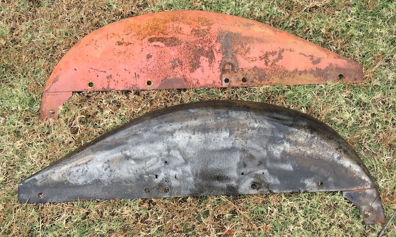 i have begun the elctrolysis on the fenders from my old 38 B. I chopped the top off a plastic 55 gallon drum and made a deep tank for the larger parts. The first fender has been boiling away for 3 days and what was left of the old paint is beginning to come off in slabs. I take that as a sign I am about done with fender #1. My question is did Allis Chalmers use paint with lead in it? My sacrifical iron keeps collecting this bluish depsoit the gas tank didn’t produce, and I am wondering if that is lead from the paint.
