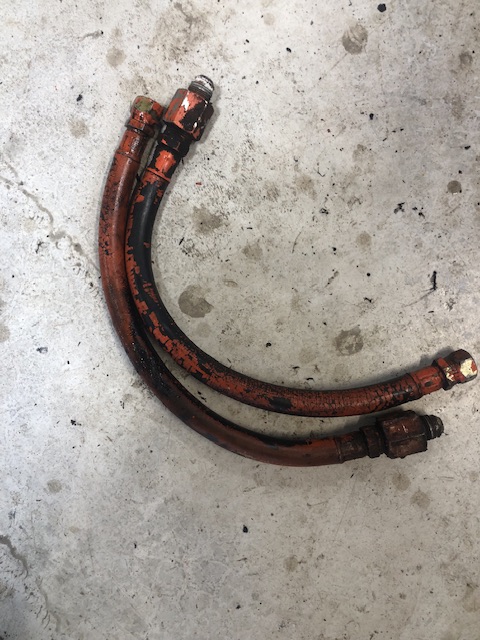 The other day I had my 170 out just for a few minutes, heard something pop and had hydraulic fluid running under the right rear. Did t have time to dig into, just backed it back in the shed. So today I dove in, looks like the hydraulic hoses going from the spool valve to the break away couplers have been rubbing on the rock shaft for the past 5/ years. And also petrified.