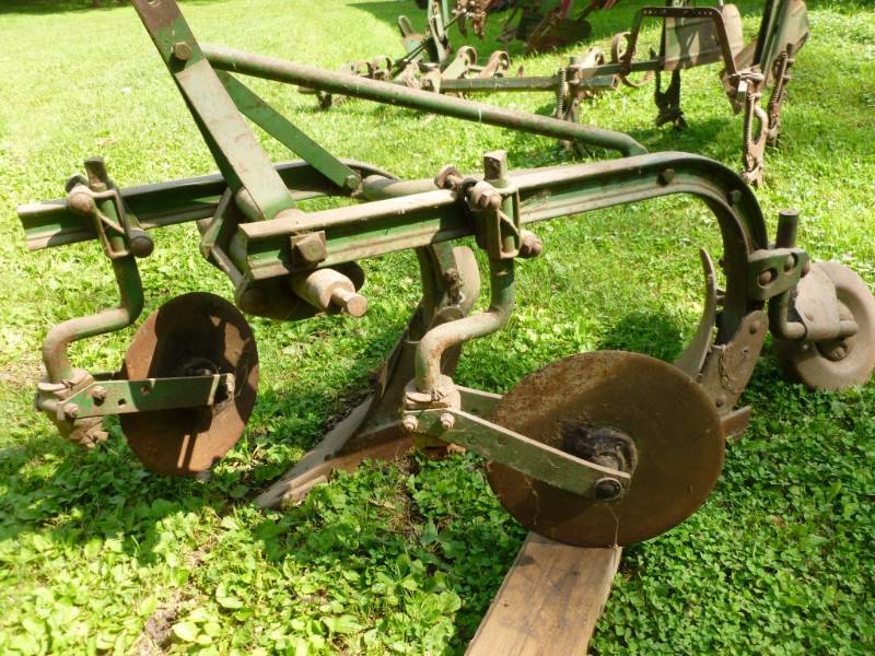 It's doesn't look like any John Deere I've seen before, but it looks like JD paint and there's JD stuff in the background. Could been made by someone else and resold by Deere for the smaller 320's or 420's. Oliver made a lot of plows for other guys. They made some plows for Ford.