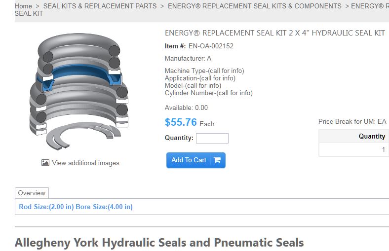 Your right hunter... dont seem to be able to find a 2-1/2 inch ENERGY Hyd cylinder.. There are 3 and 4 inch , but no 2.5 inch... I have bought packing from ALLEGHENY before.. You might have to call them or send them a note and they can "make up" a kit from parts. ... This is what your packing set looks like.. but THIS IS THE WRONG SIZE... second photo is other TYPES of packing that they sell for cylinders..