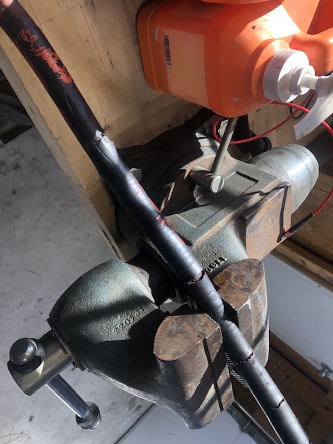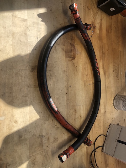 The other day I had my 170 out just for a few minutes, heard something pop and had hydraulic fluid running under the right rear. Did t have time to dig into, just backed it back in the shed. So today I dove in, looks like the hydraulic hoses going from the spool valve to the break away couplers have been rubbing on the rock shaft for the past 5/ years. And also petrified.