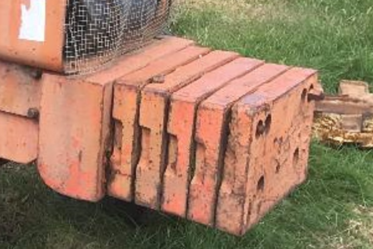 I see an original cast iron A-C wrap-around starter weight (approx 250 lbs) bolted to the front of the tractor. Then I see FIVE identical weights attached to the starter weight. Nothing flame cut. ALL cast iron. Oliver does sound better than what I thought was J.I. Case.
