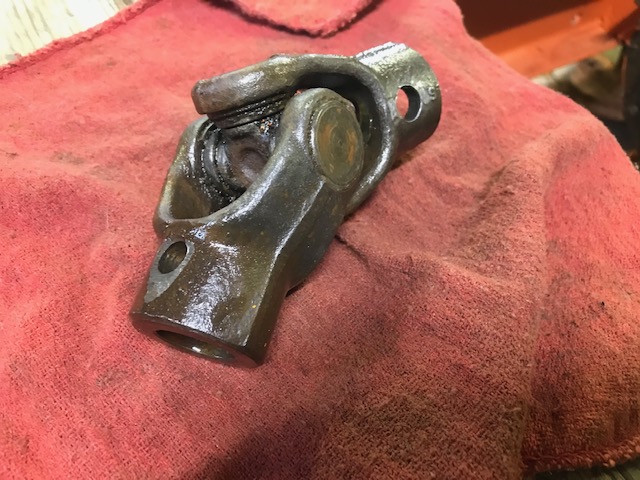 They are in the $100 range to but complete from aftermarket suppliers . I was thinking about trying to disassemble and fill the pin hole with lead or brass and redrill. The big worm shaft bore was not too bad. Replacing the old style pins with roll pins like the newer tractors. I suspect this is not the original yoke bearings for a 1937 tractor, the bearings just seem to be too good compared to other wear parts. DJs Tractor shows a rebuild kit for less than $20 but not sure how universal they fit. Most of the pictures show a snap ring style yokes with grease fitting in the cross if it is rebuildable style. I may be able to get it apart without ruining the seals, may try that before I order a new U joint. It is easy to work on this now because the engine is still on the floor. Looks like access is not very easy after the engine is back in place. Good news was that since it had been moving around a bit, it was easy to slide apart when I pulled the engine. Even getting off the steering shaft was not too bad.