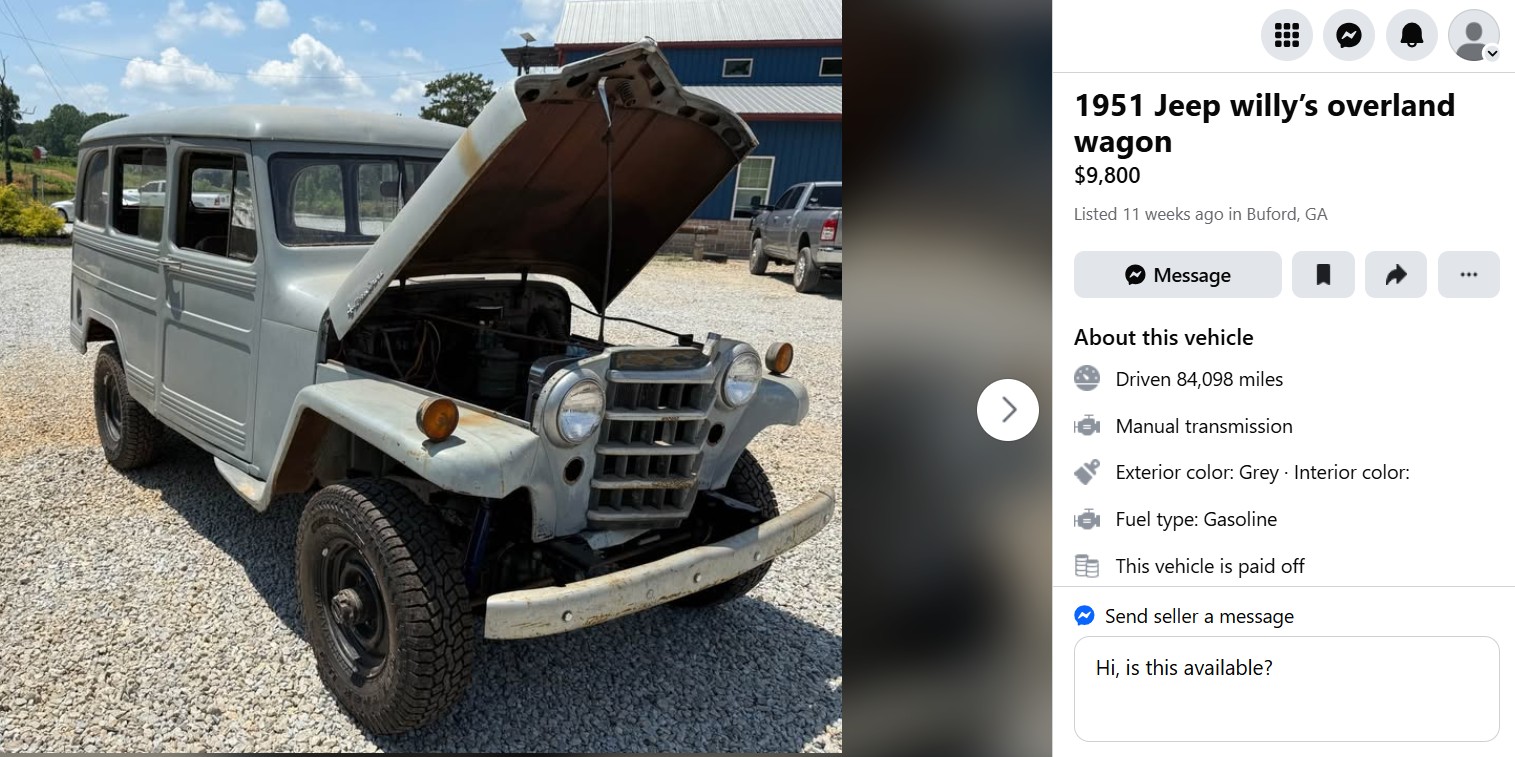 I owned a 51 Willys pickup about 45 years ago, sorta wish I still had it as it would be perfect for my putt-putting around the homestead nowadays. It had a four-cylinder F-Head engine, three speeds on the floor with High-Low transfer case. It had 5.38 gears and topped out at about 55 mph wound out to the absolute max. Sold it to my Bro-in-law who swapped in a 4.3 Chebbie V6 and used it to plow snow; he promptly destroyed the rear end so swapped in a set of Toyota Land Cruiser axles, the next to explode was the transfer case so he put in the Land Cruiser transmission and transfer case. That worked fine until the frame started cracking so he fish-plated it, which was all still holding when he sold it after 10+ years of abuse. He is a pretty good mechanic with a really heavy foot!