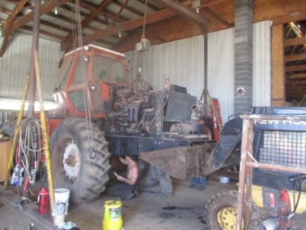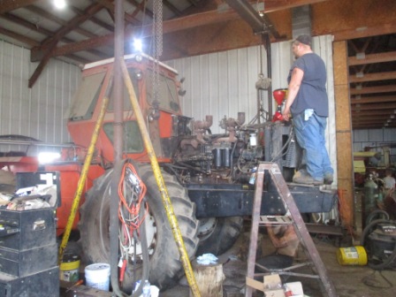 With a tractor this big, there is quite a bit of stuff to disconnect and remove just to get at the major parts. I am not sure how many man-hours will be in this repair, but im guessing a lot. We should have it going by the end of the week, we are waiting on an oil pump. The first start in 5 years should be quite a sight!