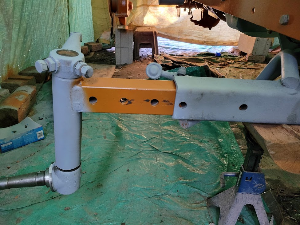I rememebr fixing up the work front pivot parts. I had new pieces made and welded a new bolt on the the axle. The angle of the bolt wasn't quite right so I had to cut it off, put everything together and weld the bolt on in place. Old stories now...
