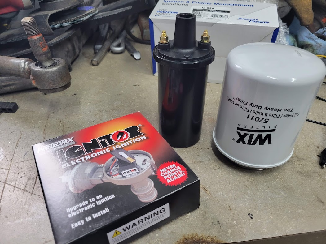 Some more parts have arrived! oil filter, ignition coil and Pertonix ignition 12V negative ground setup.