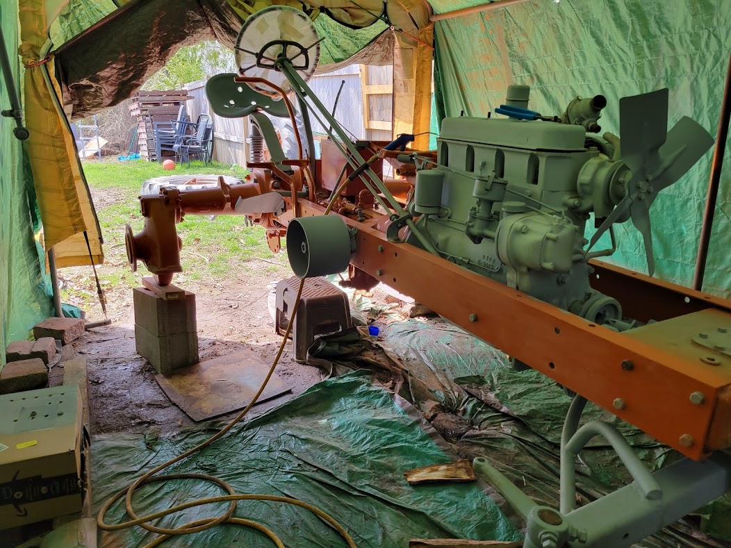 It is coming along very nicely! You have the large tension spring for the throttle linkage? Reworking the vertical steering shafts will help it steer like a new one. I did some similar things to our WD, and it steers very nice now! Your power steering system is very cool. Nice job engineering and fabricating the attachment hardware! My old brain cant hardly get around that but your make it look easy. Regards, Chris