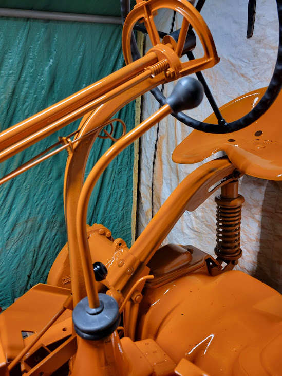 here is the tractor prior to painting ![]() ![]() After 2 coats of paint, this is what Allie looked like ![]() ![]() After the 2 coats, I touched up a couple areas with a 3rd coat. after the hardener started its magic, I was able to put some new spark plugs and ignition wires into place. along with a pertonix ignition kit and new coil ![]() ![]() Exhaust manifold and carburetor looking good in place! ![]() I also got the shifter boot and knob into place. I was really looking forward to installing that shifter boot. It was one of the first parts i purchased! its been a long wait but it finally found its home. ![]() And the new oil pressure gauge. ![]() Hoping to have the unit wired up over the next few days, Front hubs installed and the unit back onto its wheels by the end of the week. I will need to move the tractor outside to get the hood, grille and fuel tank prepped and painted. |