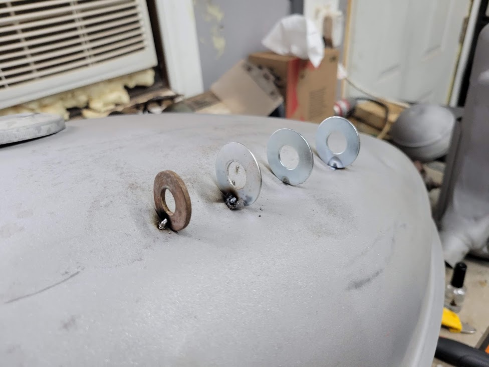 Those are neat ideas. I have a tank of another color with a similar problem. Was gonna buy a stud welder but those washers could save the day.