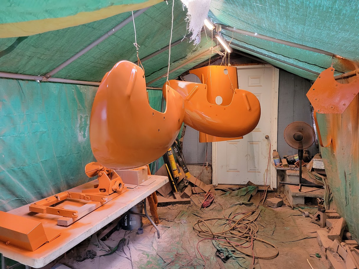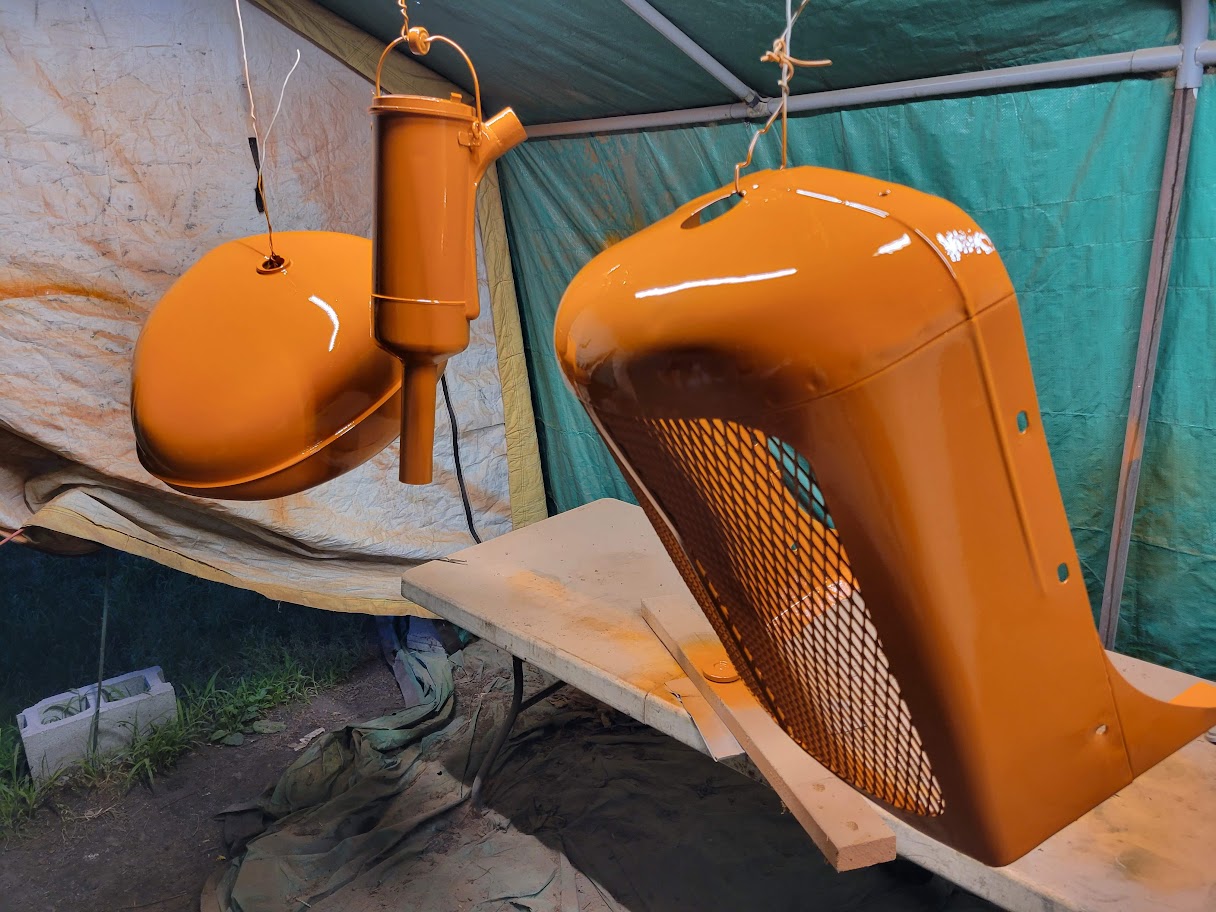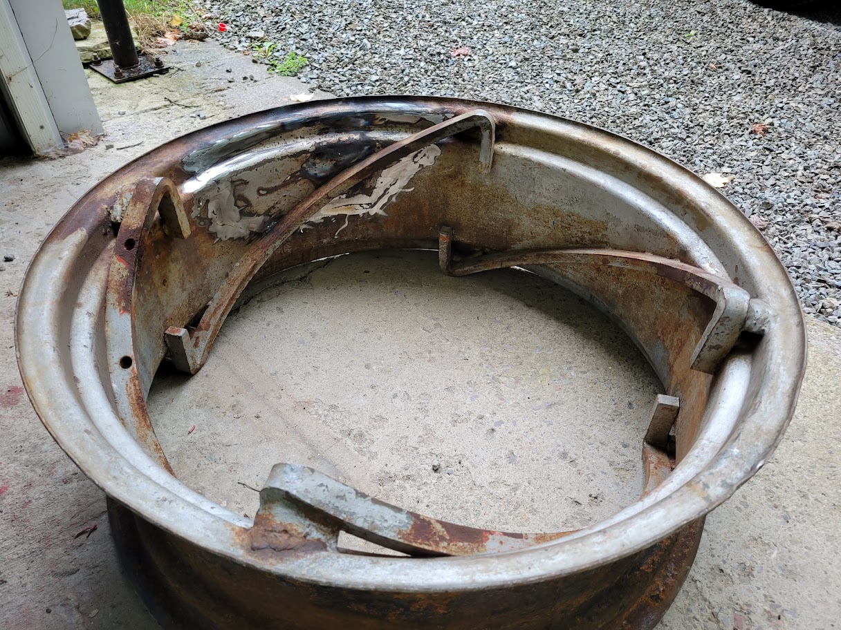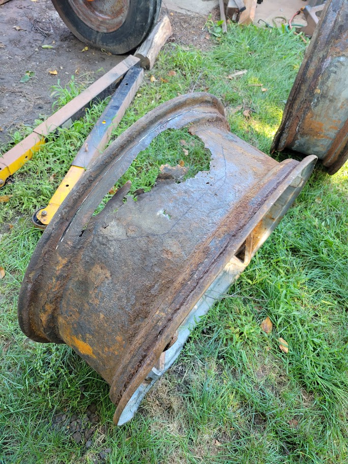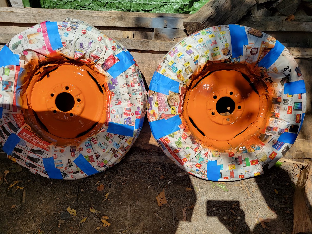 I am Back! a few months of working on tractors without actually updating the forum.. Time to update! Got the fuel tank, grille and air cleaner primed and painted ![]() ![]() As well as installed onto the tractor. didn't take long to install that is for sure! ![]() ![]() I had repaired the original hood, Purchased new fenders from DJS as well as a toolbox. Took apart the snap coupler setup and painted all of it orange. Lots and lots of bodywork went into those fenders to make them smooth.. I could have hammered steel into a fender smoother than that! pretty disappointed with the fenders. First tin purchased online and it was almost worthy of repairing the old ones with the amount of work i had into them.. ![]() Here the tractor sits after all the pieces were painted about a day earlier. ![]() I was able to get some decals on about 1 week after all the items were painted. They turned out pretty good. After researching for hours on the decal placement. ![]() ![]() Rim repair was next. Man was I dreading this!! I was able to get the tires removed by the local tire shop, about 600lbs of calcium was removed.. I then started with repairs using my donor 24" rim. After about 8 hours i had the rims repaired and ready for paint. pretty tight timeline on tire installation (12 hours after painting) but I was already booked in and had to make things work. The rims were painted with Rustoleum Hammered silver finish paint. That is the closest thing to galvanized i could find. 3 coats did me well. ![]() ![]() ![]() While i was getting these tires taken care of, Allie was looking a bit upset to be back on blocks... but hey! at least the jack matches! ![]() Here is the tires while i was at the tire shop, I went with BKT tires all around, 5.50-16 up front and 14.9x28 bias ply in the rear ![]() ![]() ![]() Once the tires were taken care of, It was onto the rim centers, Front rim paint and power shift guides. These powershift guides were so seized, I had to smash them apart and heat the snot out of them while impacting to get them loose. took about 5 hours for 8 pieces. Thankfully they all came free. Upon installation i gobbed them with antiseize so we wouldn't run into this issue again! ![]() ![]() ![]() ![]() I went with silver outsides, orange insides on the front rims. I really like the look of them matching the rears, So.. I just went with it! this was the rustoleum hammered silver and Persian #1 orange. ![]() ![]() And, After the rear rims were installed and powershift was locked, I was able to tour around the yard with Allie. Here are some "finished" photos of the tractor. I still have a few items outstanding that i will get to another day, But for now, The tractor is pretty much Pulling ready for our first event this weekend. ![]() ![]() ![]() Allie did take a bit of a trailer ride yesterday to get weighted, came in at 3880lbs with myself on the tractor. I have an appointment tomorrow to get the tires filled with about 520 lbs of ballast. bringing the total weight to just around 4400 lbs finished. ![]() Also.. Almost forgot! The cherry on top for pulling season here. A D17 gas governor spring. after some adjustments to the governor and throttle rod, We should be all set to go for this weekend. ![]() ![]() Stay tuned for some more updates here and there after we get some use out of Allie.