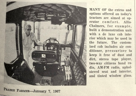 I found this interesting article in an old Prairie Farmer magazine, dated January 7, 1967. Anyone on here, who may have worked at Allis-Chalmers back in the day, remember seeing or being involved in this demonstration? ![]() Here is a closeup of the AC cab ![]() |