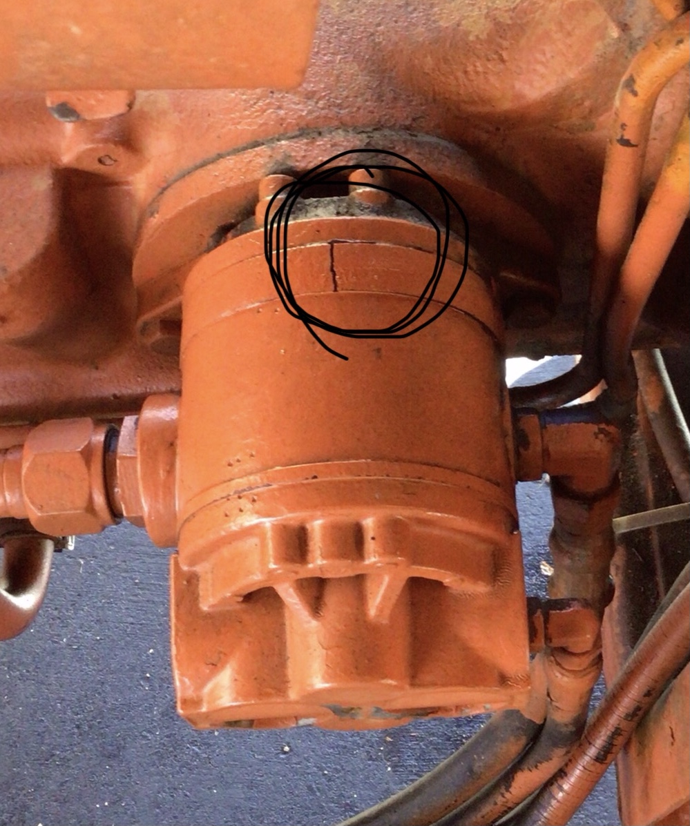 This pump is on a Allis Chalmers D17 series 4 tractor. The crack shown in the picture will allow fluid to gush out thru the crack