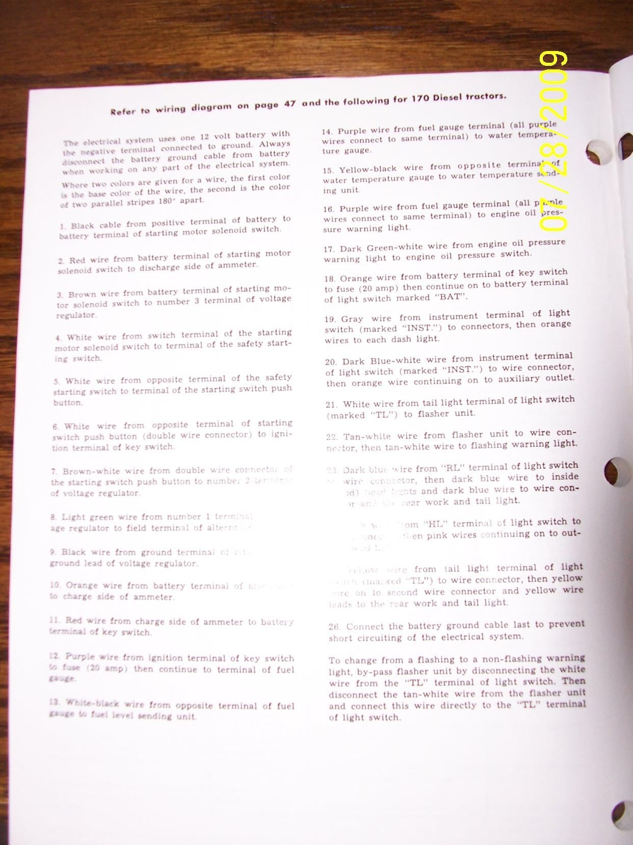 just a guess.... but the 170 diagram shows a BLUE wire going to the rear work lite and the TWO wires on the flasher are both an off white color...... 4 and 5 to the SAFETY start switch are also a white color..