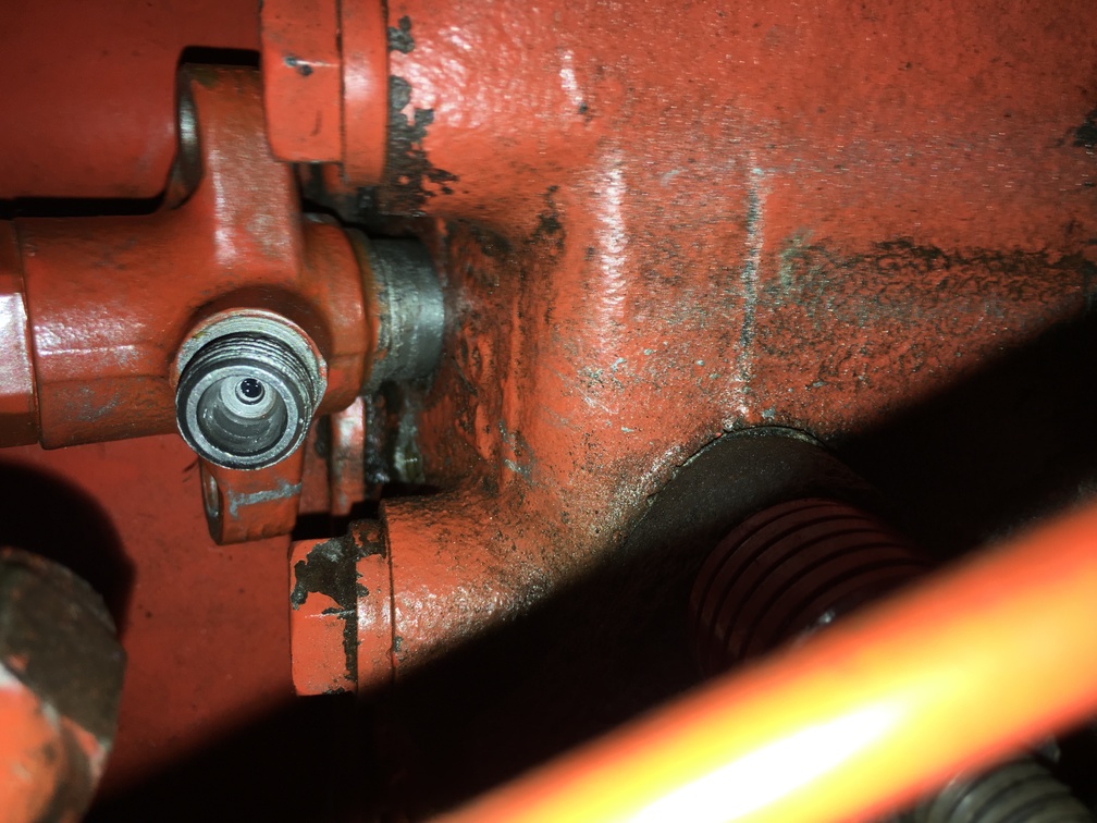 Removed pump and injectors for overhaul after turning engine till marks in pump window aligned and timing mark on gear cover was at about 20 deg BTDC. Did not turn engine while waiting for rebuilder. Did remove the pump drive gear cover plate but 90% sure I did not disengage those teeth from idler gear teeth. Reinstalled pump and injectors, bled lines, started tractor, and it sounded pretty good, but white smoke. As I waited for it to warm up, diesel started leaking from the exhaust manifold so I shut it down knowing unburnt fuel was present. ![]() So what have I done ? Messed up timing ? Injector issue ? Please refer pics for clues ... The idler gear has a timing dot but the pump drive gear doesn't have a dot that I can see, but does have a helical shaped mark around the rear face. Is this a timing mark ? Service manual shows a dot aligned on both gears when timed correctly. ![]() With the pump timing marks aligned and the pointer on 18 BTDC per service manual, the dot and helical don't align. ![]() Also, it doesn't look to me like the injectors are seating properly even though I verified no crush washers left behind and new ones on each injector. Are they supposed to sit this high ? (I removed foam dust seal for the photo) ![]() With the roosa marks aligned and on 18 BTDC the idler gear dot is out of position. ![]() ![]() I never had the drive gear off the shaft but perhaps inadvertently slipped some teeth. So, any ideas on how I can get this back into time would be appreciated.