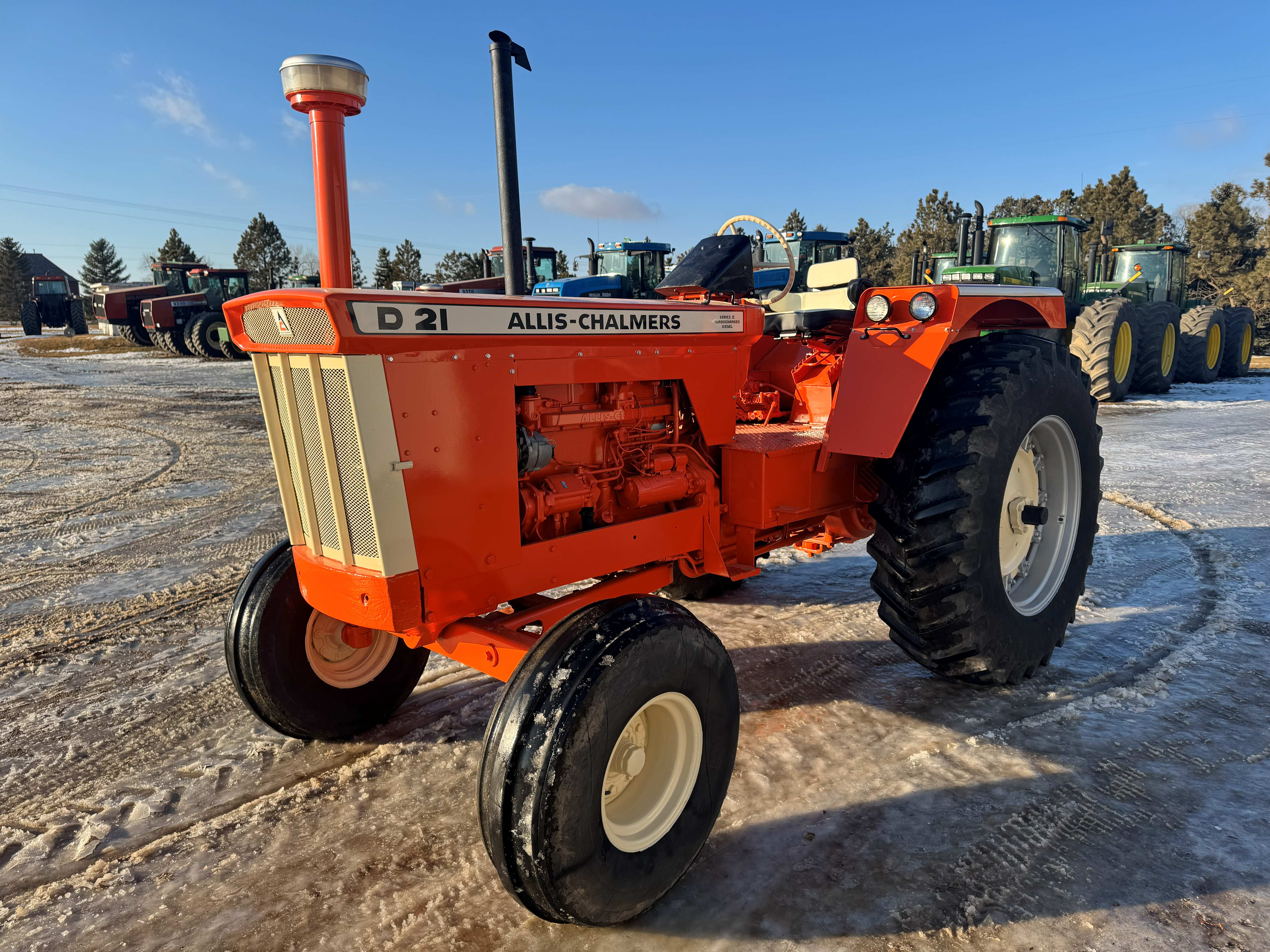 We are selling a nicely repainted D21 with 3 point hitch, a couple of 4W305 4 wheel drives, and a 220 Allis Chalmers along with 30 other low houred tractors on Dec. 30th. Attached is a flyer Call 1-701-340-5061 if you have any questions.