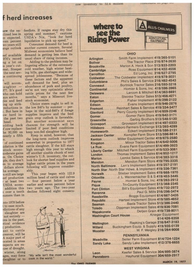 The ones we did business with were Hancock Farm Equip which at one time had stores in Herman, Tekamah and Blair Nebraska and Mahnke Implement in Fremont Nebraska. King Implement became Summit Lake Implement was in Tekamah after Hancock's moved everything to Blair. So we had three AC dealers within 25 miles of us.