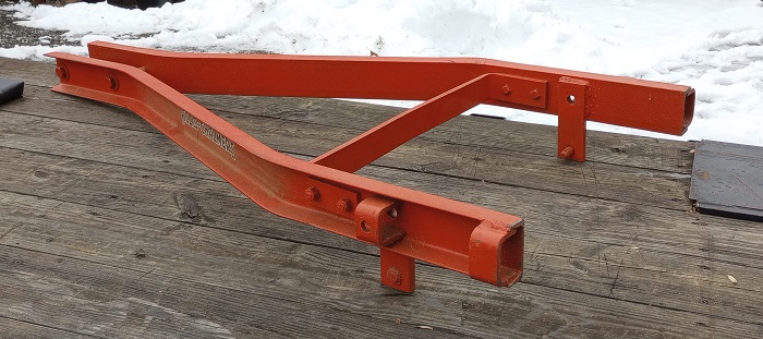 That looks a lot like a Windpower Post hole digger frame(although shorter). They used the same frame for AC's and for IH fast hitch. They just bolted the fast hitch prongs in where the channels slide over the AC's rockshaft arms.