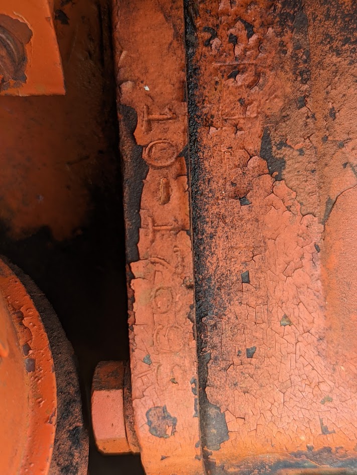 For reference, the left of the photo is towards the tractor body, the right of the photo is towards the front of the tractor.  Everything I've seen says that the numbers are "on the left" but this is found on the "passenger" side of the tractor so to speak, which to me would be on the right side of the tractor.  Is "on the left" if you are on the tractor looking forward or if you are looking at the front of the tractor?