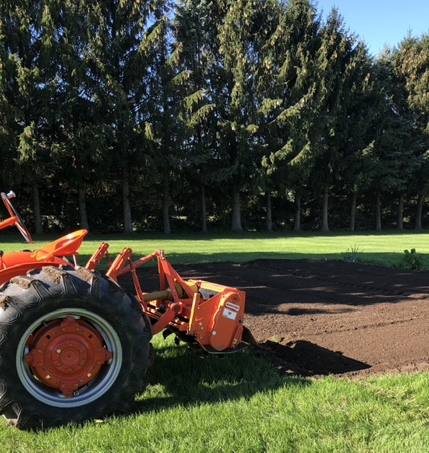 I have a 5' on my D-14, offset to cover the right rear , works great though I have to feather the 'big stick' for 1st passes. You need to go slooooow with a tiller as others have said. Adding lots of compost will really help. I'd till N,S,E,W to mix everything really well and 'level' the land.