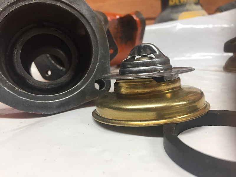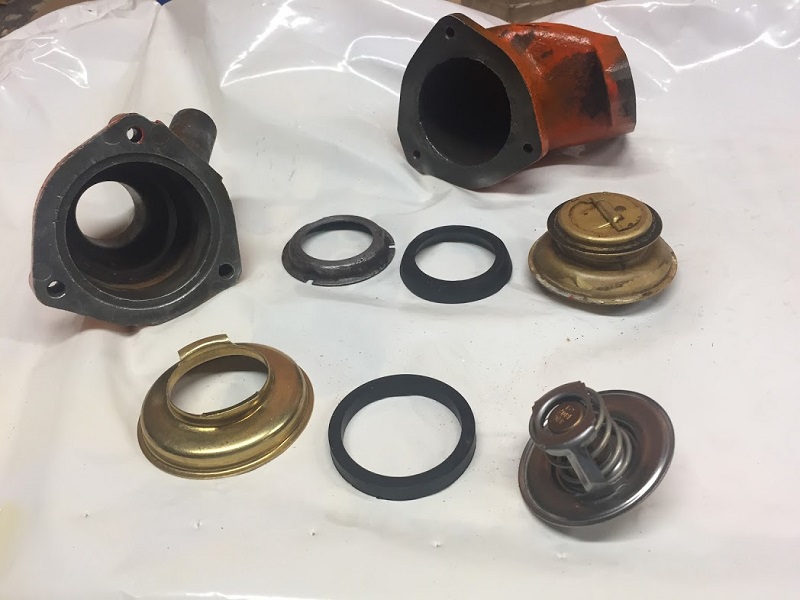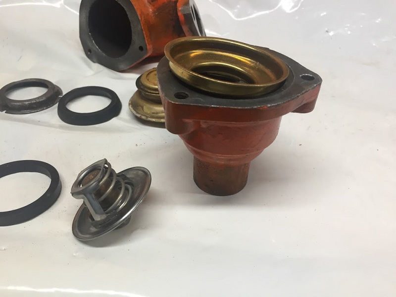 After a thorough cleaning of the radiator on my D17 IV, the engine has been running way too cool.  Those little 1/4" bolts weren't about to come loose easily, so I removed the entire housing and did manage to get them out with some heat and soaking while twisting only one off.  I assumed the thermostat was bad, so I ordered a new 180 deg one.  It is the 2 piece style with a rubber gasket.  However, it looks quite a bit different from the old one, which is "taller" and has some ports that appear to let the water through into the bypass before it opens.  The replacement one looks like any other modern thermostat.  Also rather oddly, the old one appears to be stuck in the closed position rather than open, so I don't know why the engine is running so cold (it is full of coolant, no leaks and the temp gauge was an aftermarket one I put in a few years ago).  However, I still need to stick it into a pan of water and see at what temp it actually does open.  It is just odd that the engine runs to cold, unless a lot of flow is going to bypass.