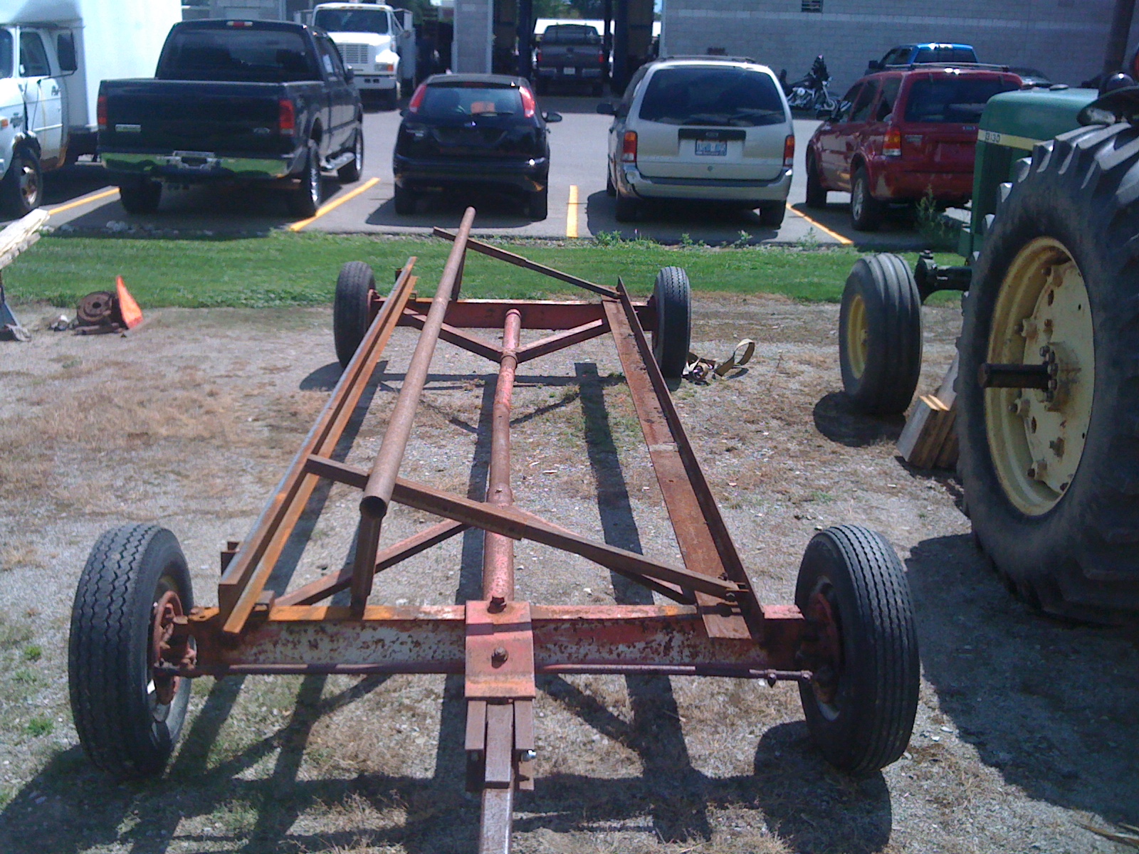 power line post's work well for the main beam on any wagon running gear and on one unit i have i even just added a axle, with a short reach and put my 8 row corn head on one just make sure you have a tounge that can be taken off in shed save's a lot of *%$#* stumbles when ya walk past   (smiles)