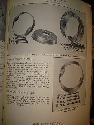 This is the WD45 I got at an auction sale a little over a month ago. It came with the duals on it (and it does not look like they have been touched in years). The tractor does have the original spin out rims on the inside. It appears the duals hook to the inside lip on the wheel centers. I do not know much more than that so far.