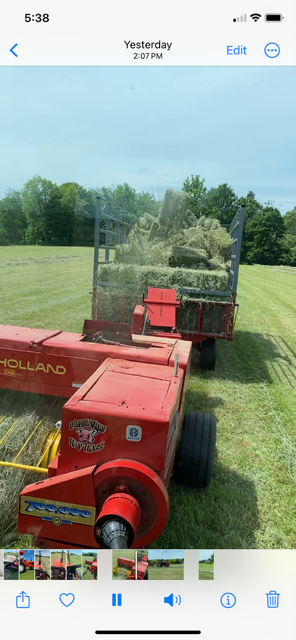 It was a late start for us as we normally start at the beginning of May, sometimes late April if we have a really warm spring. We did bale 1 field a few weeks ago but didn’t risk knocking more down because of the forecast. As it turned out we could have made both orchard grass fields. We have a little longer hay season in Va if the weather works out. We have had several years of a 4th cutting when the rain and sunshine cooperate. Good looking hay Dana. Do you run 1 or 2 square balers?