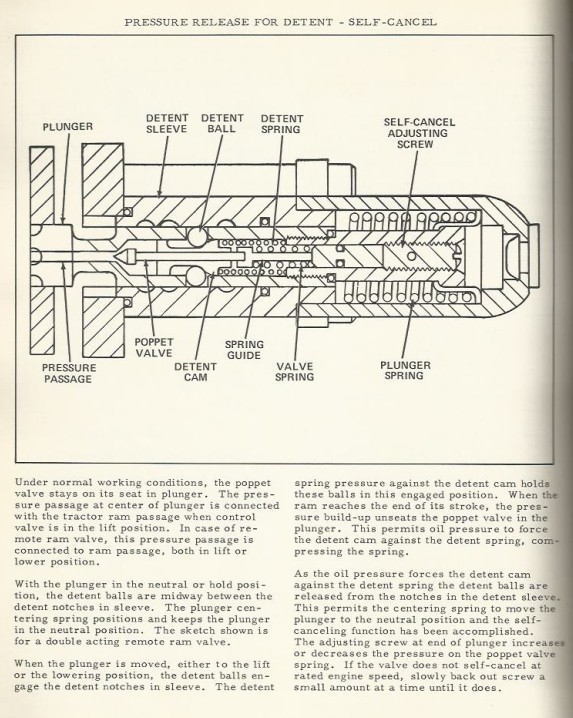 and being you had to screw the pressure detent in, something or some one messed with it I would bet. Remember that there is the lift position, a hold position, a float/traction booster position and a lower position... And when you press it down to lower, you have to pull up to the first detent to the hold position. Just some pics to look at... ![]() ![]() ![]() |