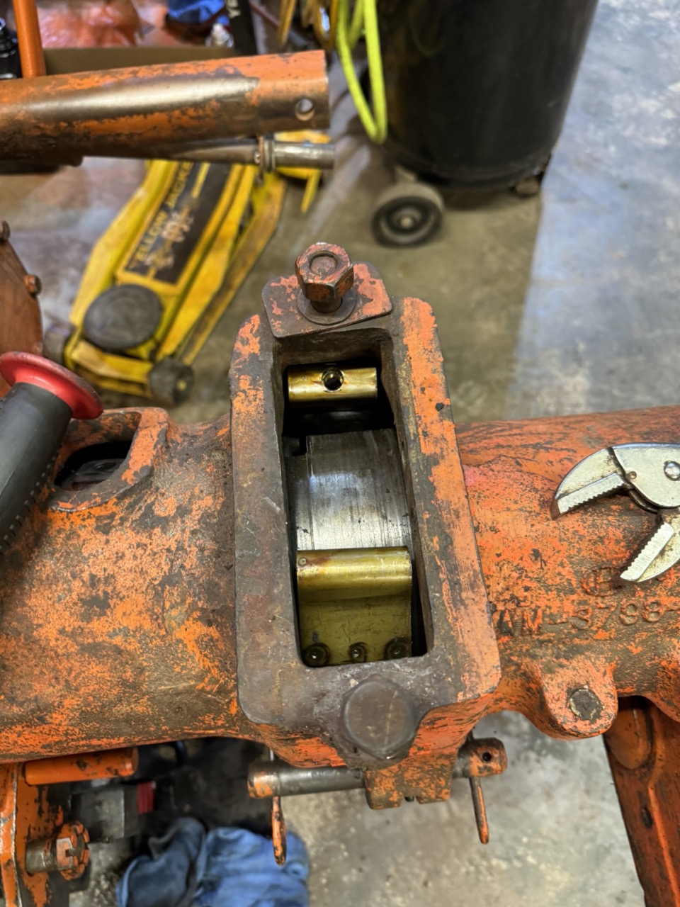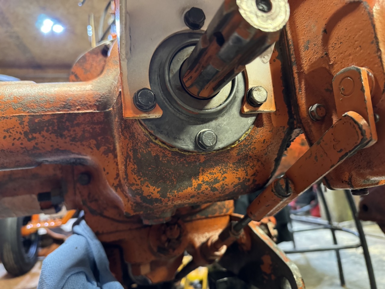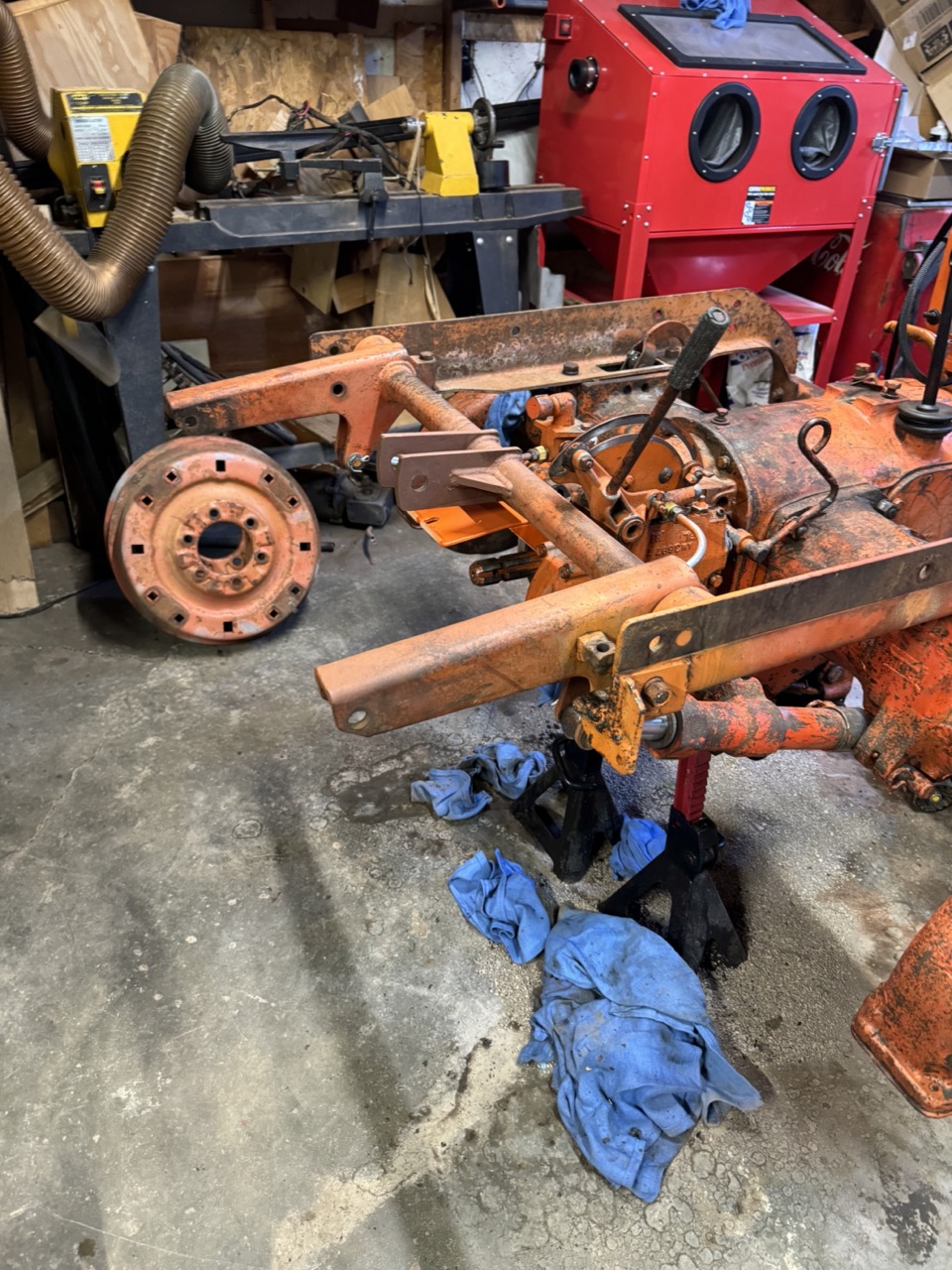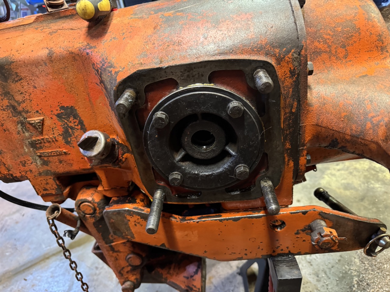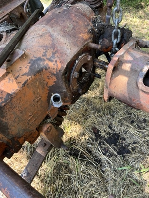 Was back at the farm this weekend with the family and my brothers, sister and I grabbed a few other pieces. Mostly interested in the differential carrier. Using the John Deere tractor loader and a chain, Milwaukee impact, we separated the final drive shaft and removed the carrier. Plan to use this in place of the one that is worn as previously post.
