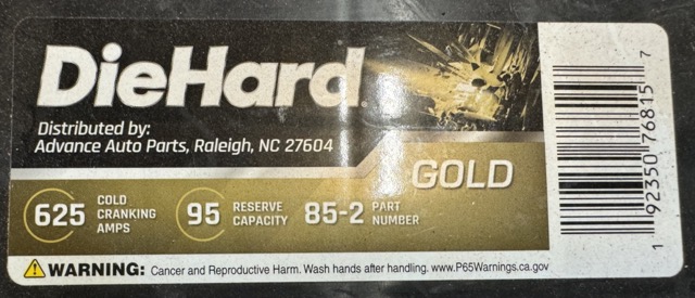 Ted, Here is the DieHard Battery. Model 85-2. This is 8" H, 9.1" L, and 6.9 W. The Manager at the Advanced Auto distribution center I went to, was awesome.... I had the dimensions of the battery box and we walked around and found this one that fit with a bit of extra space. The DieHard was one which was not totally over the top in price. ![]() Edited by CA13414 - 04 Jun 2024 at 8:16pm |