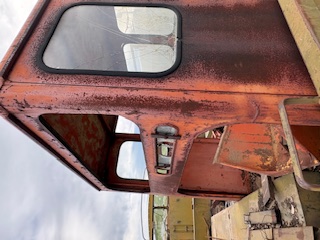 I scored an HD 11 cab the other day, I believe it to be an OEM cab. Lots of busted missing glass but that is to be expected and most of that was from when the guy removed it from his 11 some 30 years ago, he was very upset that the cab had rubbed a hole in the fuel tank so he just pushed it off over backwards to the ground, I am surprised that any glass survived at all. I want to do some changing on it, the doors are sliding doors and not in very good shape they will have to go and the area above the fuel tank is raised about 7 inches to allow for the BeeGee pump levers over the tank, it makes it hard to see the hitch, so I will remove that sheetmetal and extend the glass lower and run the levers under the seat. There will need to be something done about the fit around the fuel tank as well.