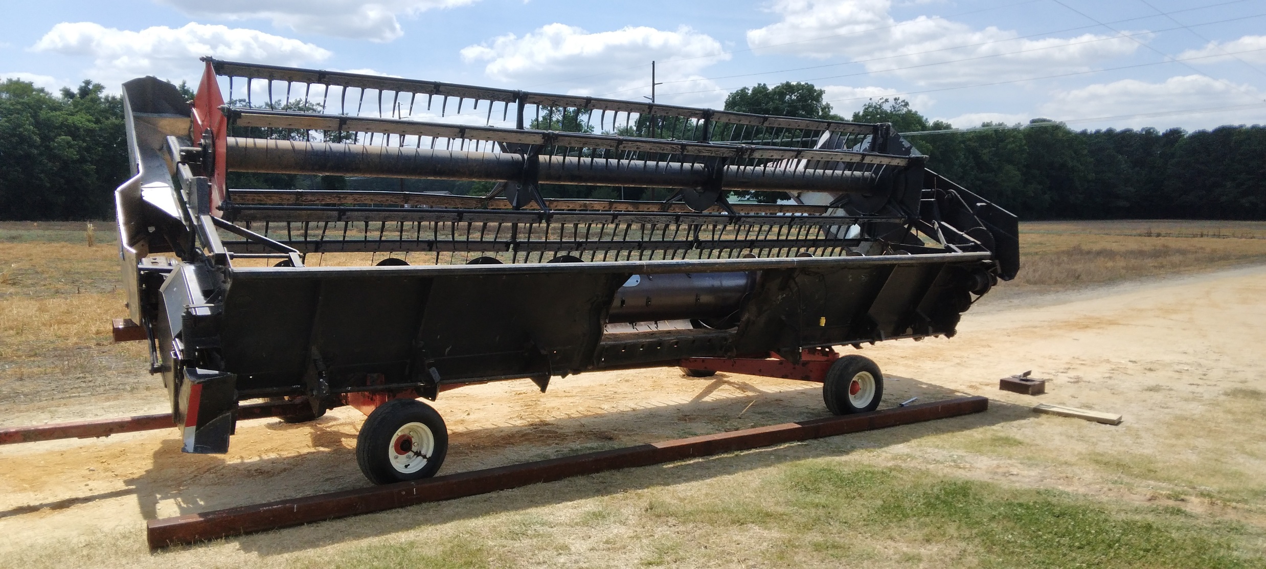 Turned an old AC running gear into a header cart. Ive had that running gear since the 70s. Yes I know its jacked up too high in the front. Ill adjust it when we it back off