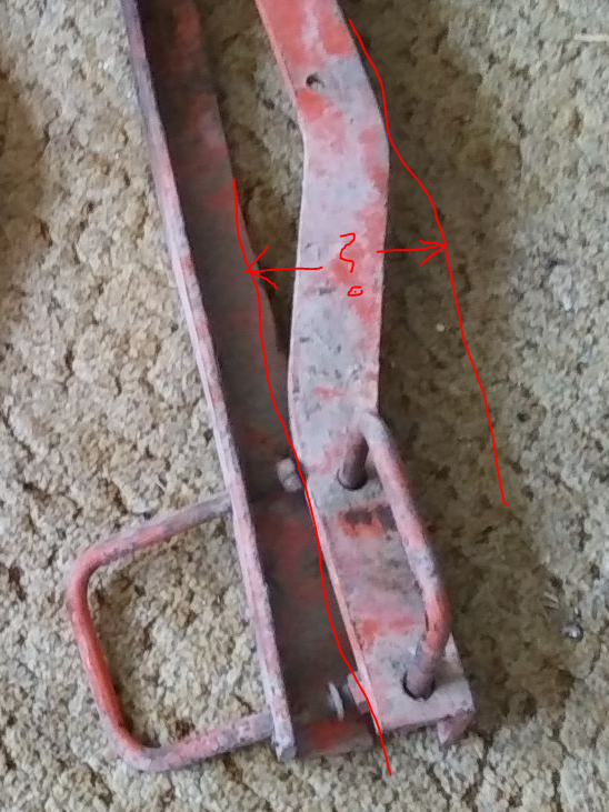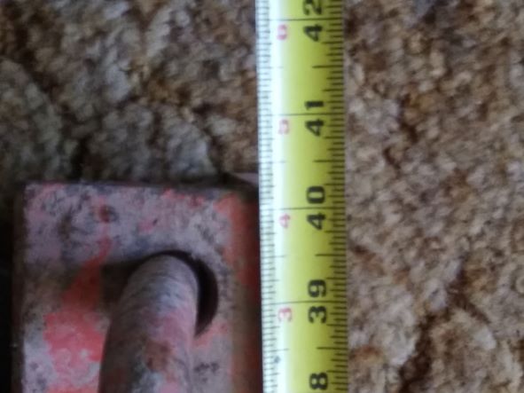 No hurry.  If you could also measure or estimate the offset distance I show marked with the arrow.  My guess is that is about 5 inches.  One option I have is to get something like a 6 inch by something angle iron and not worry about bending or welding but drill holes.  I just need to know how wide that is.  Thanks.