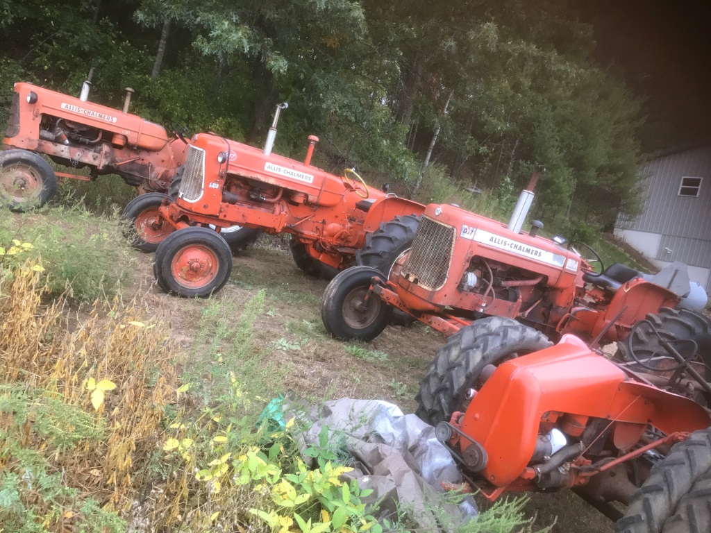 D17 1958 (NFE), WD45 1954 (NFE), WD 1952 (NFE), WD 1950 (WFE), Allis F-40 forklift, Allis CA, Allis D14, Ford Jubilee, Many IH Cub Cadets, 32 Ford Dump, 65 Comet.