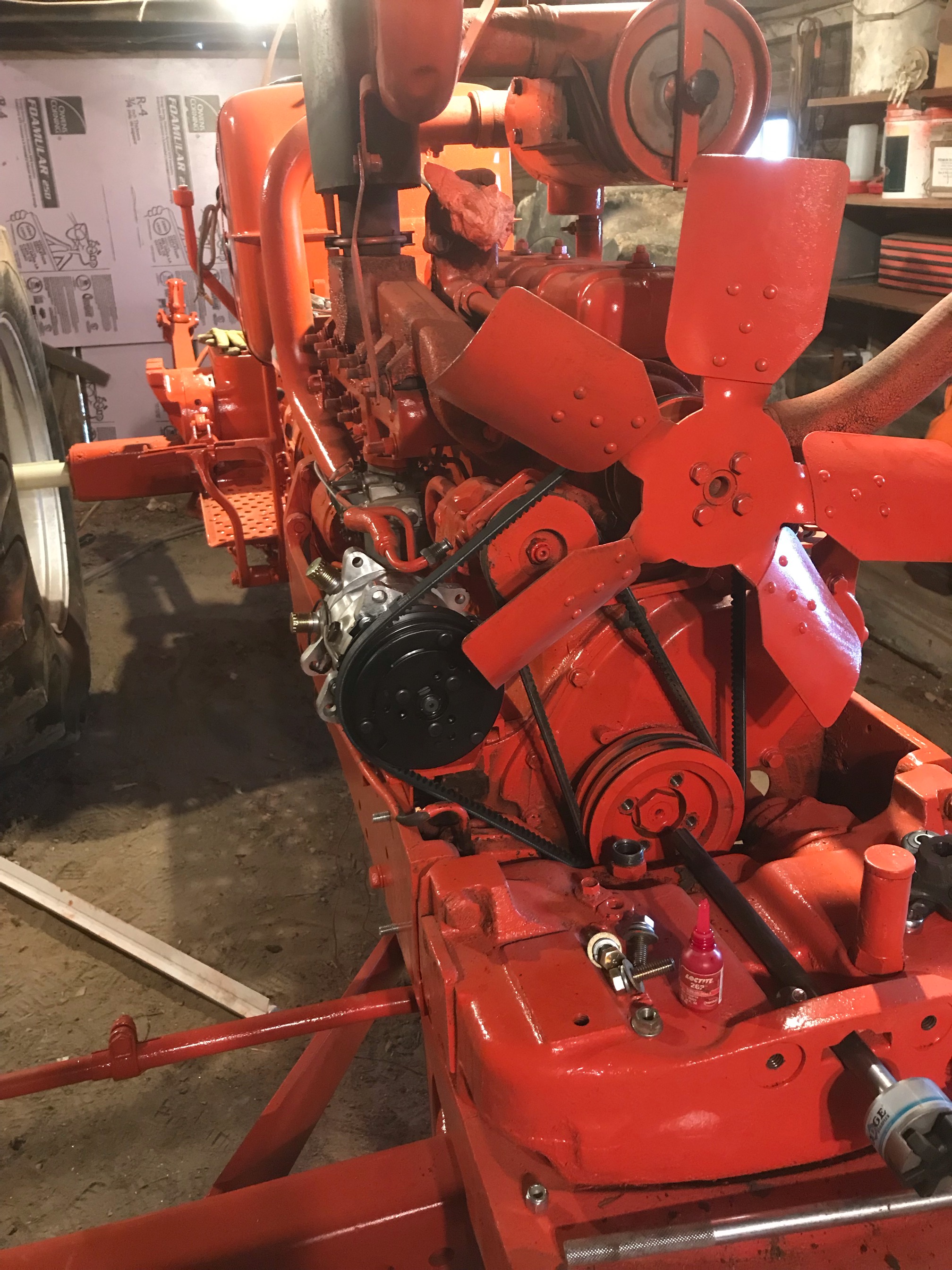 A-C had an optional front "auxiliary" hydraulic pump that sat inside of the sheet metal. I've only seen pictures of it, but it appears the driveshaft was a 2-wire hydraulic hose of some sort. No Love-Joy coupler on the pump shaft and the pump bolted directly to the holes in the front support. AGCOPARTSBOOKS.com page 238 shows the pump and page 268 shows the driveshaft under D-19 tractor info.