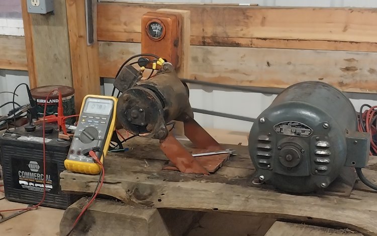 No, that is not a typo, this gadget truly is a one-wire generator. ![]() I have several old generators (thanks ORBill) that I am finally getting around to testing. This unit is a third-brush type and has no provisions whatsoever for controlling the field current; a quick google search for the part number 943U shows that it is for a 1931-34 Studebaker. Some further searching led me to a Studebaker forum where I found schematics that clearly show this generator having only one wire leading from the armature to the cutout relay. The amazing thing is that it actually works! I realize that I am probably the last person on earth to learn that this was at one time state of the art technology, but I have always been a bit slow on the uptake ![]() ![]() 8 Volts at ~8 amps ![]() ![]() My high tech generator test bench