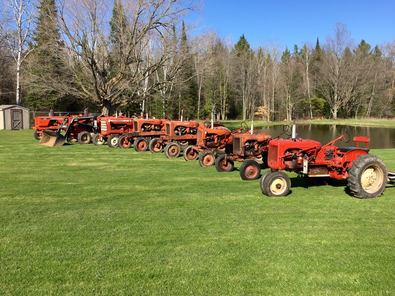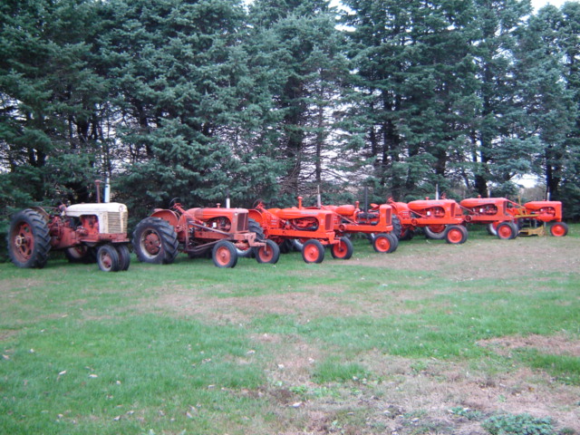 D17 1958 (NFE), WD45 1954 (NFE), WD 1952 (NFE), WD 1950 (WFE), Allis F-40 forklift, Allis CA, Allis D14, Ford Jubilee, Many IH Cub Cadets, 32 Ford Dump, 65 Comet.