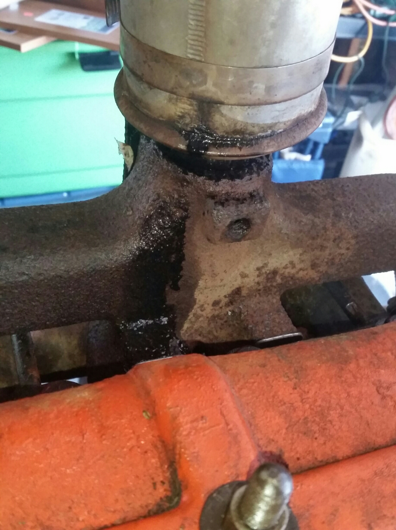I'm burning oil around the muffler. Yep...that's what I said. I don't see any leaks, pulled the intake/exhaust manifold off and had some black, burnt oil on the ports. Cleaned it up, but can not for the life of me see where it's coming from. So I took some pics. See below...