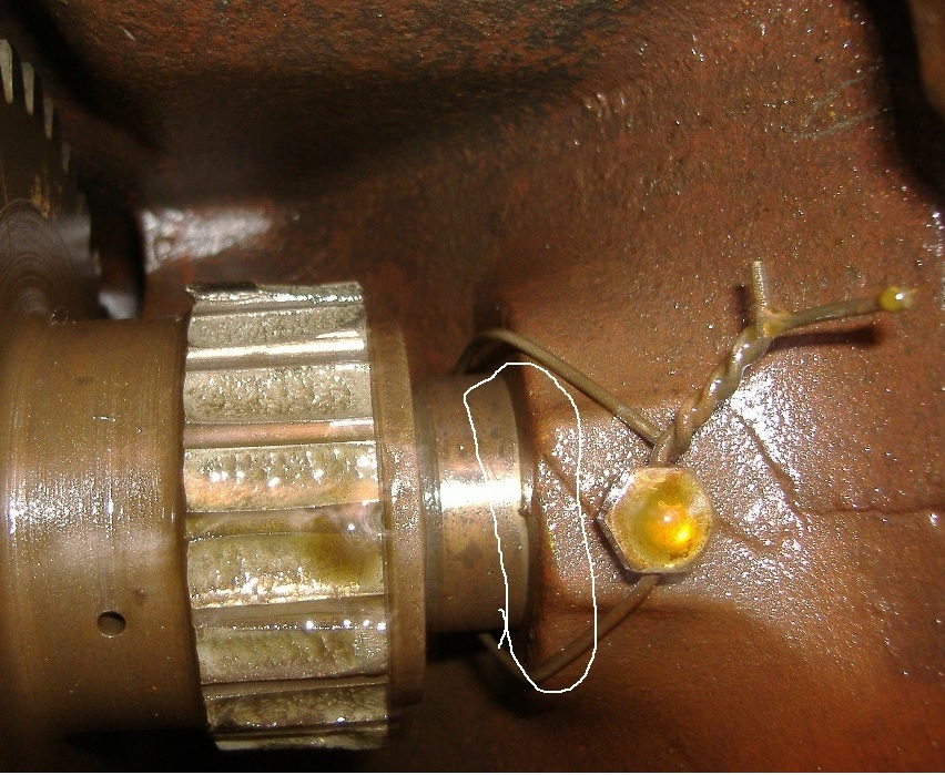 If you have the hand clutch out might as well check this bronze bearing where the two shafts mate too. Mine was bad: