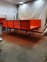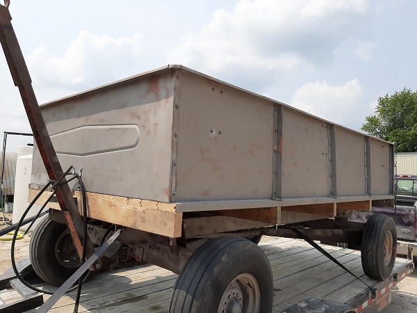 Done same more work on restoring the barge box, started doing the sanding but didn't think it was turning out right so decide to sandblast it, she went the the weld shop to have a couple cracks taken care off then to the sandblaster. Hope to primer it soon if the weather or the humidity straighten out why to much moisture in the air, fought the moisture last night when finishing up on the old girl. Would like to get it down before harvesting this fall we see what happen.
