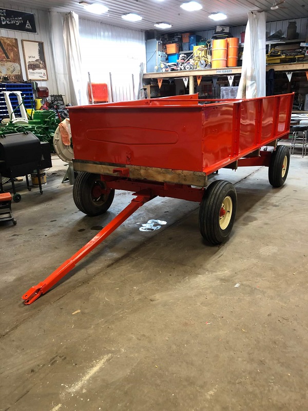 i rebuilt a wagon box (not AC) in shop class when in HS. was all wood. i built a platform on the front to stand on to scoup feed off when full. was only used to hold feed in the cattle yard. would have worked well cept i was sick one day of school and the instructor sawed the platform off when i wasn't there! (^#$%@&%*) when i came back and saw that...needless to say...the school paid for more lumber! yours looks great!