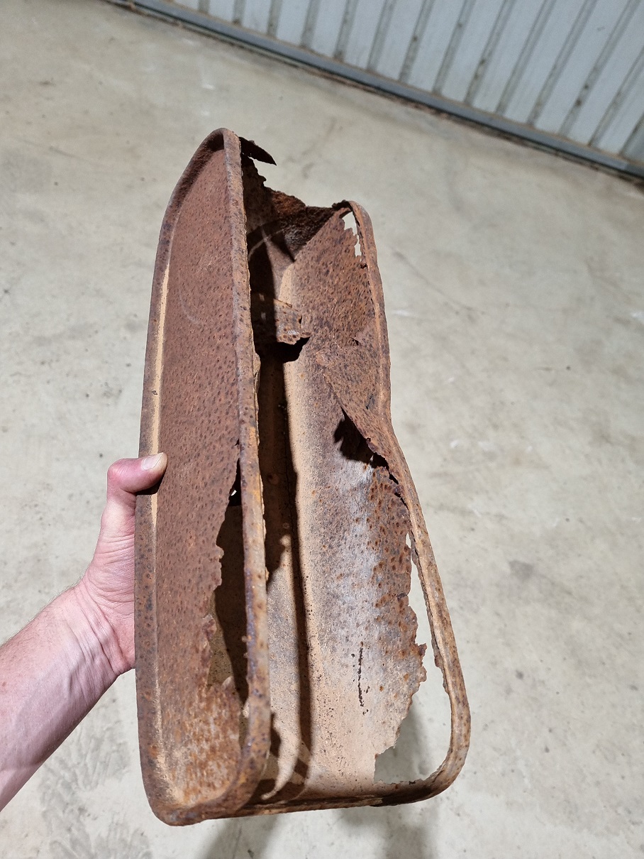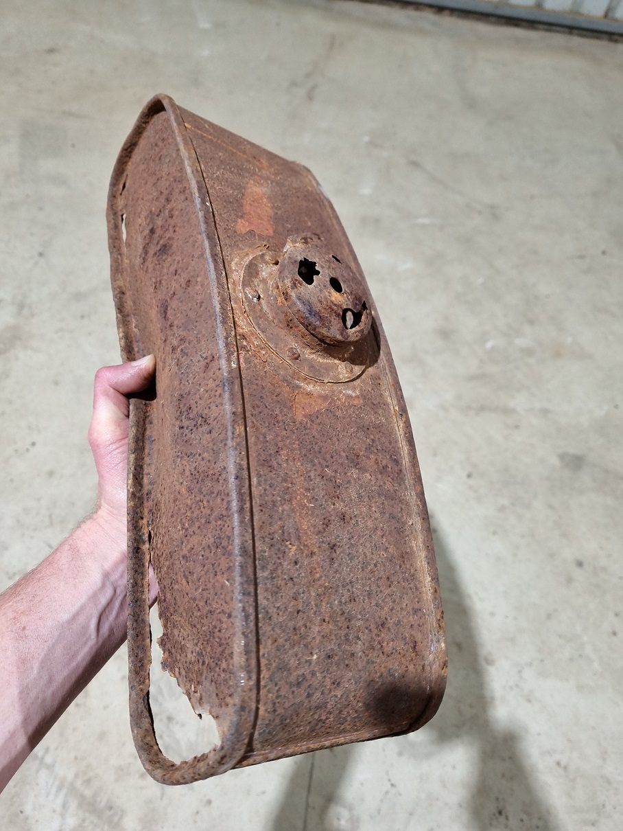 Looking at the sheetmetal, that Tractor for its age and being outside is pretty darn straight! The gas tank doesn't look to have a dent or gouge in it! Looks like just a lot of surface rust that would either sand off or glassbead off okay. Radiator looks pretty sweet to. No damage. Amazing for how old it is, and being in what looks like a scrap yard! Good luck with it. Looks like a great project Tractor with a lot going for it. Steve@B&B