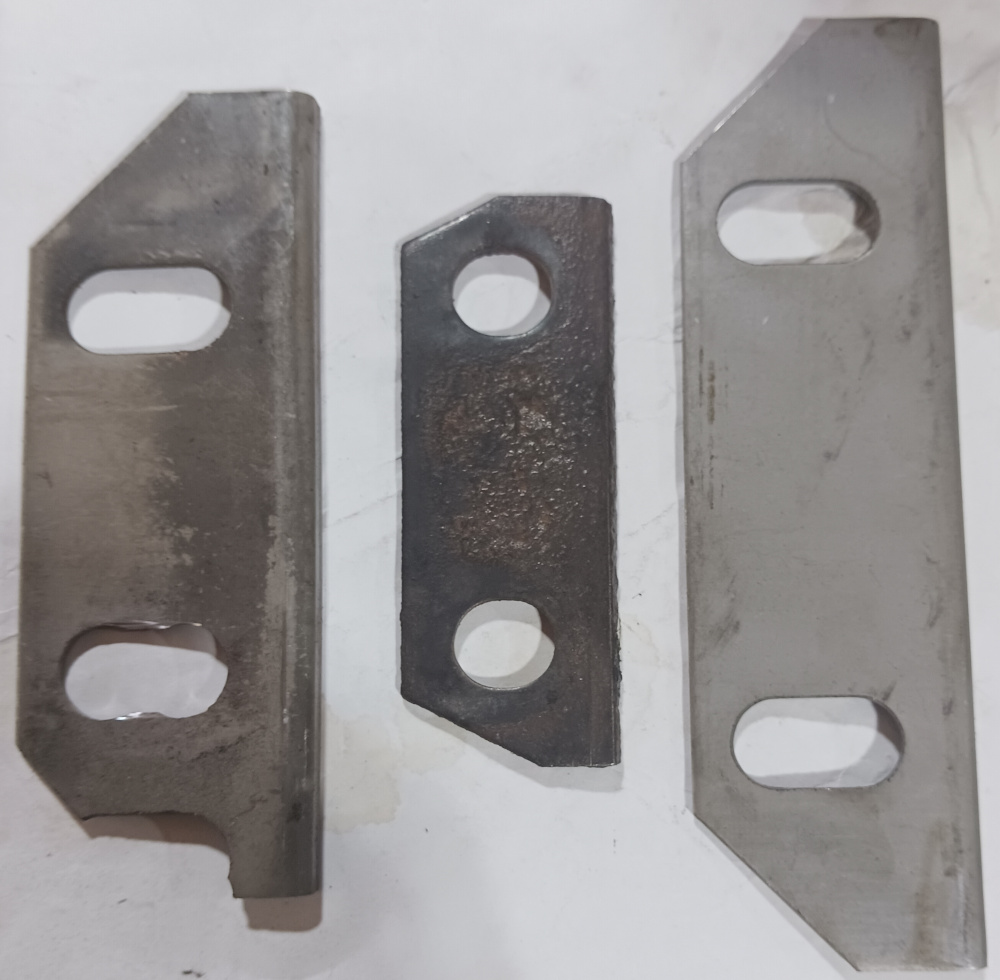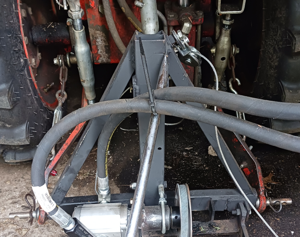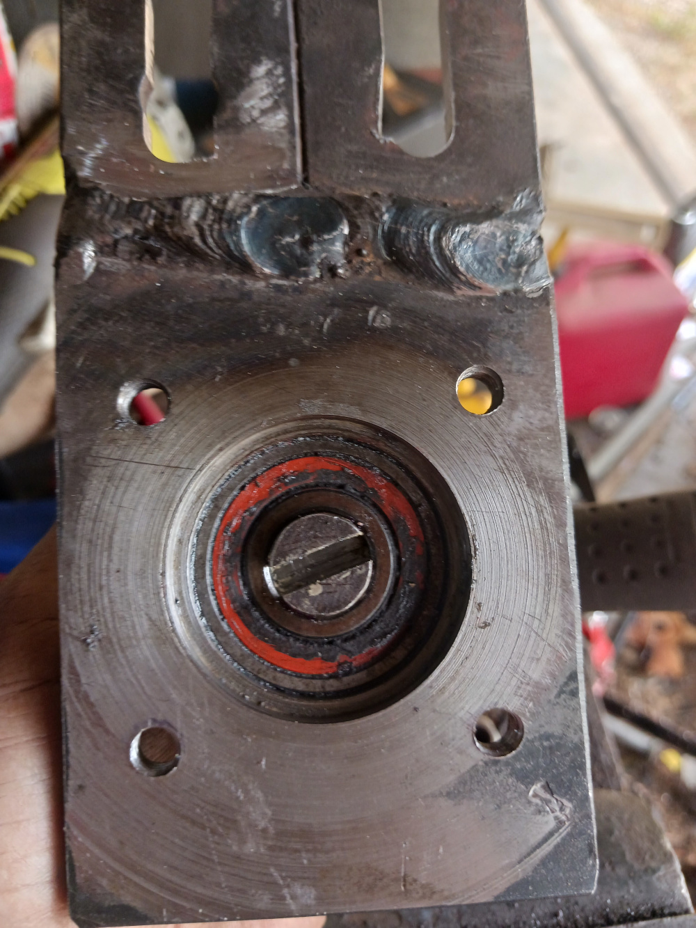 ![]() Generally it was in good shape, the major loss was the Drive pulley, which was a stamped steel original, it had rusted out ![]() I found a replacement pulley on Amazon of all places: https://www.amazon.com/dp/B0032KM34Q which is an exact fit. The bugaboo was getting the old pulley off the shaft, since the hub was seized on the shaft. First I had to use an angle grinder and cut up what was left of the old pulley’s hub. There is a woodruff key in the ‘crank’ shaft so you can’t pull the shaft OUT until you get the woodruff key out, and to get the key out you have to get the pulley hub OFF the shaft. Plus, the hinge shaft has to be removed to make the space needed to get the drive pulley’s hub on/off of the end of the shaft. ![]() The hinge itself was not seized up. But, I could not pull or drive the pin out due to the corrosion on it. (and actually you can’t drive the hinge pin out unless the Crank shaft, ala the drive pulley and all of that is removed first) I wound up using strips of sand paper to clean the rust off the hidden – back side of the pin, so I could finally pull it out. With the hinge shaft out then you can remove and re-install the drive pulley. Generally I disassembled, cleaned and re-greased everything that moved on the mower, Simplicity did a amazing job of building this thing. There are grease fitting everywhere and they used needle – roller bearings instead of brass bushing all over the place. In spite of the mowers lack of care, the mechanics, except for the one pulley were in good shape. All of the sickle guards are in place as well as the sickle sections.. When I disassembled the bar to see what was what, I found that the wear plates that are behind and under the sickle bar itself were VERY pitted on the front edge, so much so that I figured they would act like rasps and wear down the sickle bar. Being that I am a bit of a tight wad, and I also am a hobby machinist, I opted to modify ‘universal’ wear plates to fit, instead of putting my money into exact replacement parts. Hey I only paid $100 for the entire mower.. I was able to get 5 ‘MC468 Universal Sickle Bar Wear Plates’ for less than $30 to my door. Since I have the machinery, I modified them to fit the simplicity bar. The hole spacing on the ‘785 – 46 inch sickle bar is 2 inches on center. The standard for other bars is 3 inches on center. Which means the hole spacing of the ‘Universal’ wear plates won’t fit. And, wear plates are hardened steel, not something you cut and drill with hand tools. ![]() On the right side is an unmodified MC468 Wear plate, in the center is the original Simplicity 8161136 part, you can see the level of pitting on the top, the front edge is even worse. On the left is a MC468 part after I modified it. Since these are hardened steel I used a cutting wheel in an angle grinder to reduce the length of them, which lead to that weird notch on the bottom. That’s where the original 3 inch spacing hole was. Next I set these up in my milling machine and used a carbide drill to make new slots spaced at 2 inches to fit the Simplicity bar. ![]() If you want to do this, you could use an angle grinder and cutting wheel and just make a slot at 2” on center, by cutting in from the back. I don’t think that kind of a slot would effect the strength, based on how these are mounted: ![]() Yes, I smeared grease all over the bar as a way to get it lubricated until it was running and I could coat it with oil. With the sickle mower back together and working, I could start work on mounting it.. I don’t have Simplicity or Allis Chalmers tractors. I run OLD JI Case tractors, In particular I have a 1973 model 646 loader tractor that has 3 point and a hydraulic ‘pto’ for rear mounted attachments. I didn’t want to belly mount the mower, because I have no way to drive it there, other than hydraulically, and for me 3 point mounted implements can be swapped much faster. I started on a 3 point mount design along with converting the mower to hydraulic drive. I also did not want to ‘hack’ the Simplicity mower, if I sold it or something. Which actually worked out quite well. I custom made a 3 point “A frame” so that it would bolt to the front mounting holes of the sickle mowers exiting frame assembly. ![]() Eventually I wound up connecting the top of the “A” frame to what the parts list describes as the “stop” ? ![]() A fair amount of my time getting this up and running was spent working out how to drive the mower with a hydraulic drive motor. Based on the planetary gear drive that sits above the drive pulley there was no way to just couple the drive motor to the shaft or anything like that. Also, I knew I was not putting the drive motor behind the mower like the simplicity mowers drive belt attaches. ![]() That did mean I had to remove the bracket that attaches to the rear shield – cover, that keeps the planetary gear case from turning. I had to create new bracket on the front side of the shroud assembly that keeps the gear case from turning. ![]() Once I started mocking up the drive motor, and bearing assembly. (most hydraulic pumps and motors are not designed for any kind of side load on the bearings, that is why you most often see them connected by “lovejoy” couplers) ![]() The drive motor I sourced for this project also has a “tang” drive output ![]() Hey, it was CHEAP, like $30 and rated for 1800 RPM, so I figured that should not over speed the sickle. I created a bearing assembly and mount for the drive motor that connected to the tang drive and has 2 ball bearings to handle the side load of the belt pulley. ![]() The “mocking up” got real interesting when I figured out that based on where the mower drive pulley was, plus the length of the bearing assembly and the hydraulic motor, if I mounted it vertically the motor would have been in the dirt. The assembly is too long to mount vertically. Well how do we solve that? ![]() You mount th