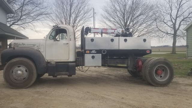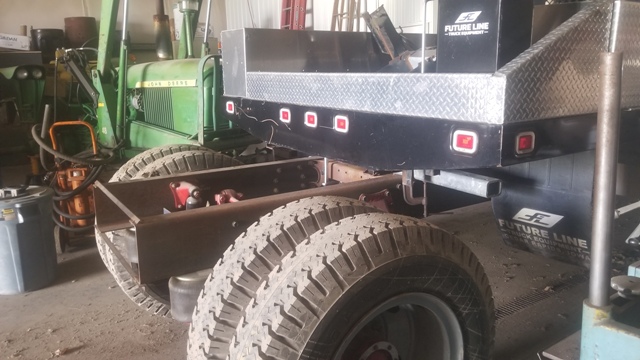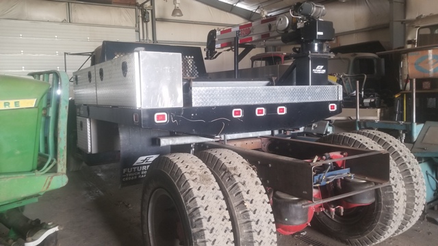 Bed is actually going onto a 2015 3500 Silverado pickup replacing the pickup box that is rusting out. They need another service truck and a pickup box really doesn't serve too well in the operation. I set it onto my Mack so it can be moved easily till the other truck is ready for the conversion.