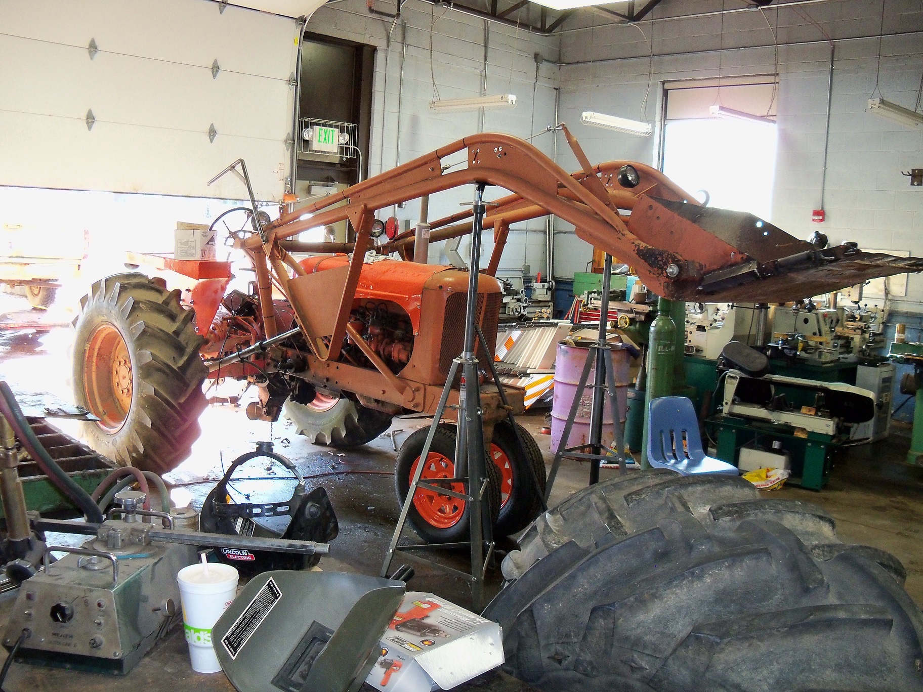 I appreciate all the insight. I am getting a pretty good picture in my mind of how to put a system together. I am thinking I may just build a set of forks for it while I am at it and remove the bucket. I do not have tilt cylinders, but I think I can easily control the fork tilt with a cheap #3500 electric winch. I am usually only picking up car and truck parts with it or moving small logs and trees. Anything too heavy and my steering goes away real fast.