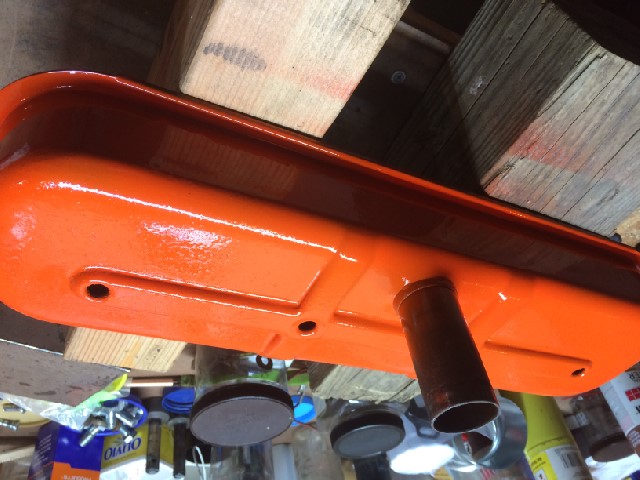 Below is a photo before I began the cleanup effort. The volume of crud is hard to see, but I consumed several shop rags and lots of solvent cleaning these parts! Valve cover and cap are now cleaned and primed. Smile